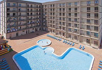 На приотельной территории оборудован большой бассейн. На этажах имеются кулеры с бесплатной водой.